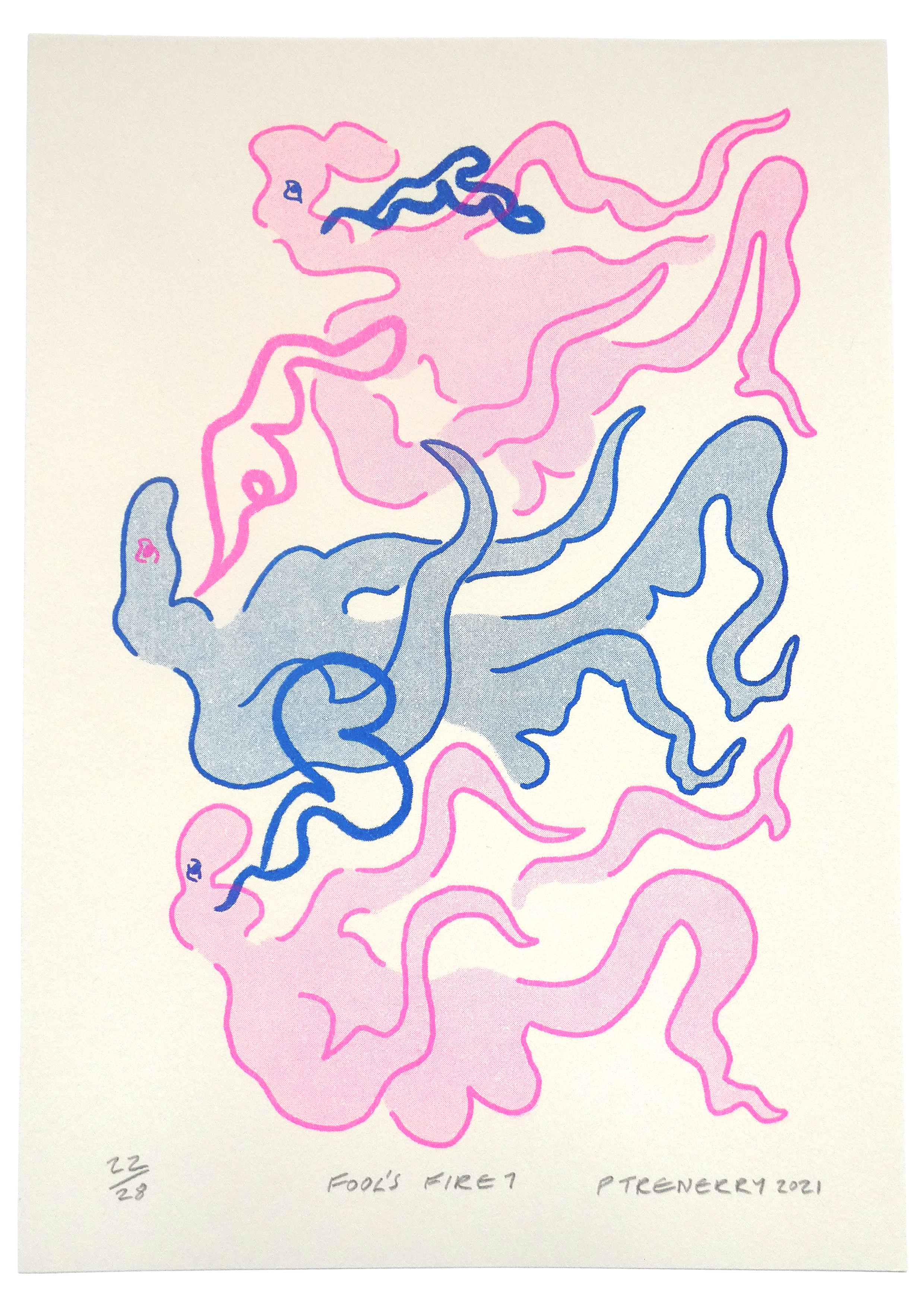 Risograph print (fluorescent pink + blue)